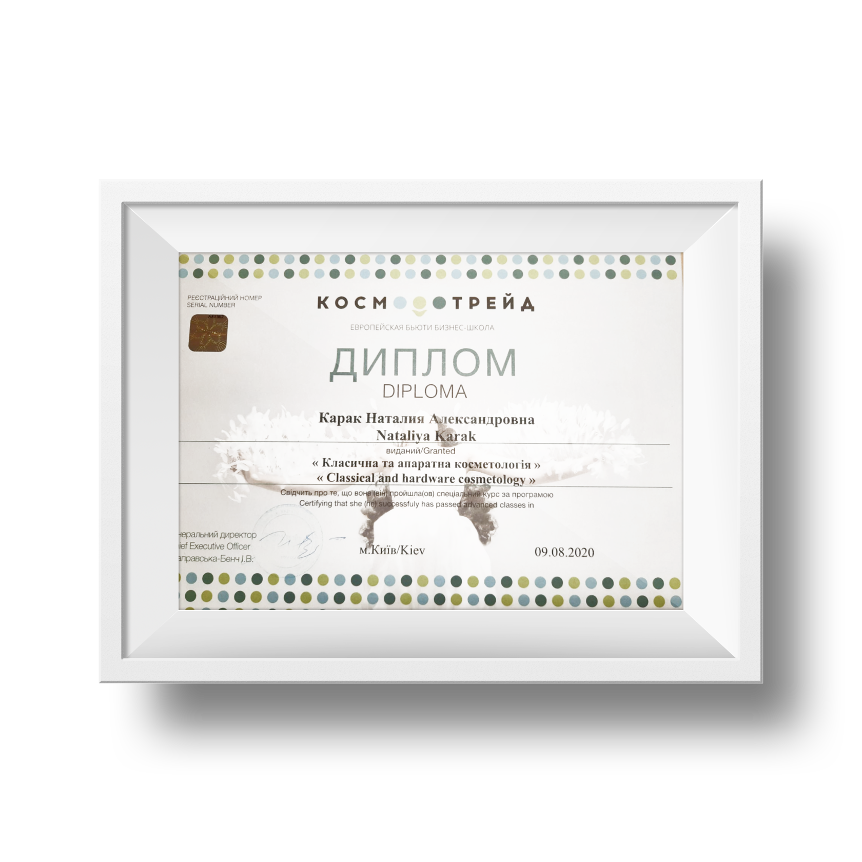 С 2013 года работает в сфере эстетической косметологии. За это время посетила около 30 обучающих конференций и семинаров для изучения новых техник и методик